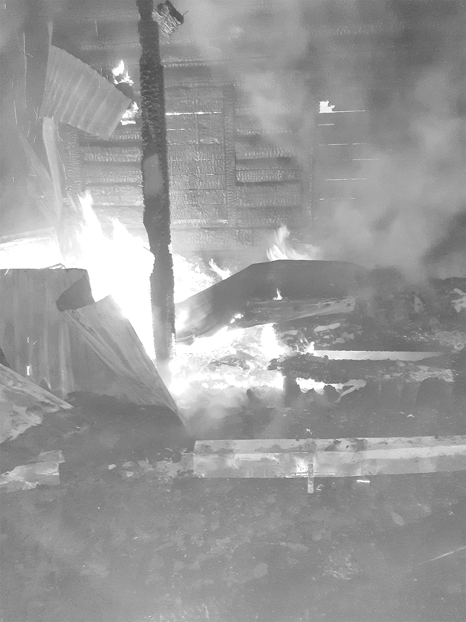 В вечернее время в субботу, 18 октября, произошел пожар жилого дома, гаража и хозяйственных построек, расположенных на приусадебном участке в селе Карымск, ул. Пионерская. До прибытия первых пожарных подразделений с места пожара самостоятельно эвакуировались 2 человека. В результате пожара жилой дом, гараж с находившимся в нем автомобилем и хозяйственные постройки были уничтожены огнем, общая площадь пожара составила более 100 кв. метров.