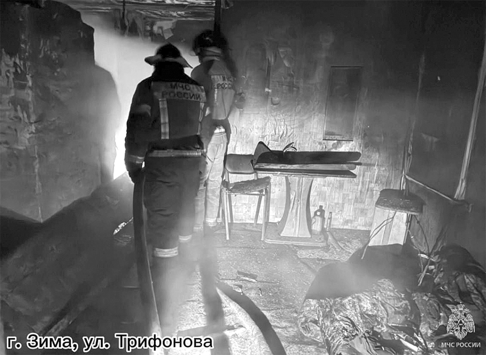 Ранним утром 22 октября в Зиме на улице Трифонова загорелся жилой дом. На момент прибытия первого подразделения из окон и дверного проема шел густой черный дым. Звеном газодымозащитной службы в ходе разведки при входе в дом был обнаружен 41-летний погибший.